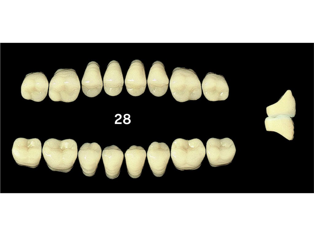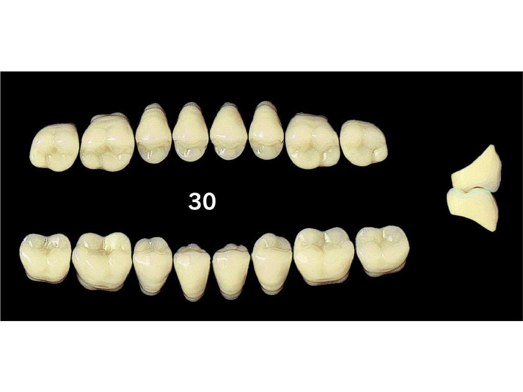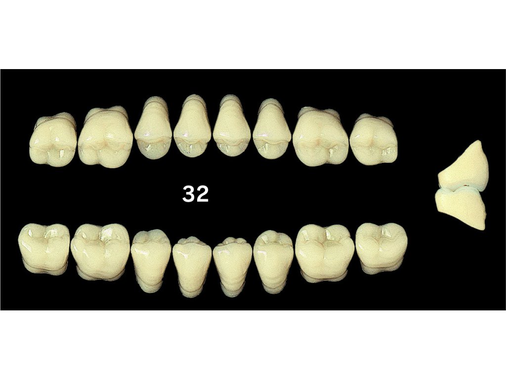 - Cusp angle 20°: Úhel hrbolků 20° poskytuje optimální funkci žvýkací plochy a zvyšuje účinnost kousání.